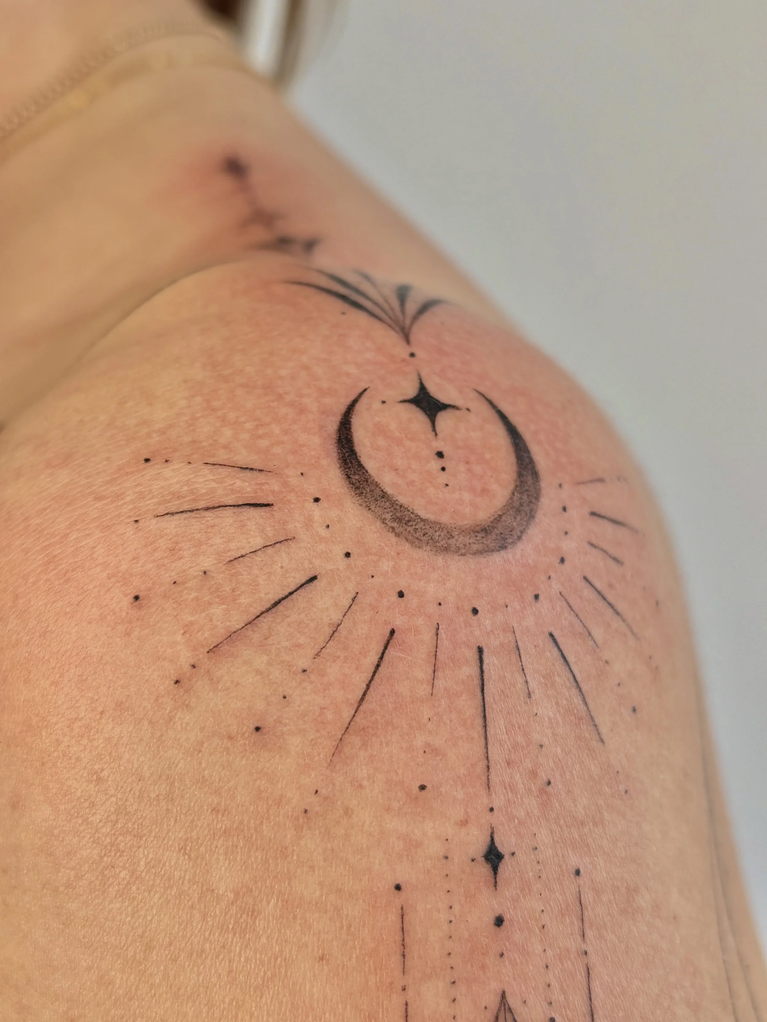 „ […] Tätowiert wurde ich von Sophie, die sich im Vorfeld viel zeit für ein ausführliches Beratungsgespräch genommen hat. Gemeinsam haben wir meine Ideen ausgearbeitet, und die finale Skizze hat mich direkt überzeugt. Eine kleine Anpassung vor dem termin konnten wir total unkompliziert über Instagram abstimmen - super Service!“